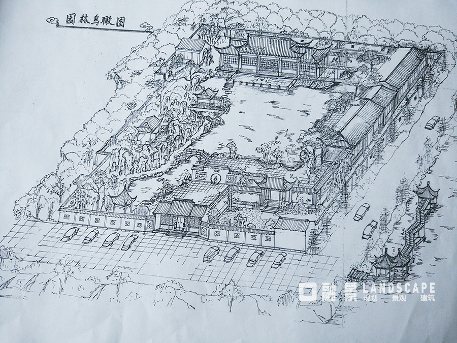 手繪園林鳥瞰圖